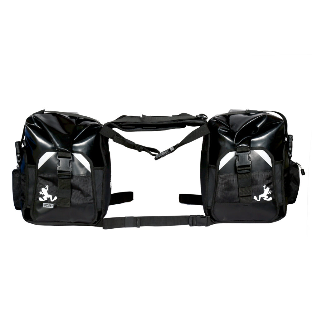 Suitable for all-weather long haul touring needs, the Frogman Saddle Bags are universally compatible and built for all-weather use.